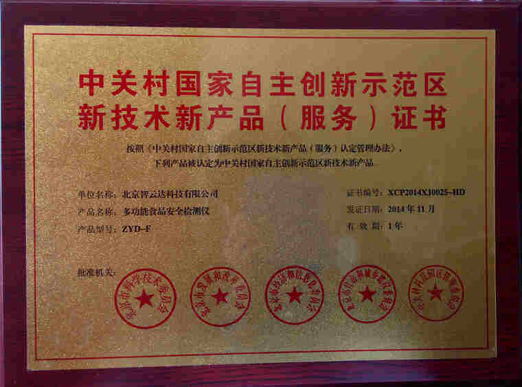 北京智云達科技股份有限公司自2005年開始從事食品安全快速檢測產品的研發,設有專門的研發機構,建立了一支以食品安全檢測、化學分析、計算機軟硬件以及光學儀器開發為主的,由多名博士、碩士為核心的高科技人才隊伍。研發人員具有較深的理論造詣和豐富的實踐經驗,是前沿專業技術和應用實踐高度結合的研發隊伍。同時,通過與中國農大食品學院、北大化學學院、國家糧食局標準質量中心、疾控中心等高校、科研單位的教授、專家的廣泛合作,研發出六大系列食品安全快速檢測產品:食品安全快速檢測試劑盒、檢測箱、食品(農產品)檢測儀器、干化學試紙、獸藥殘留膠體金快速檢測卡及抗生素檢測試劑盒。公司目前已取得各種專利共18項,以及26項計算機軟件著作權登記證書,擁有6大類400余種產品及技術。      尤其值得一提的是,在
